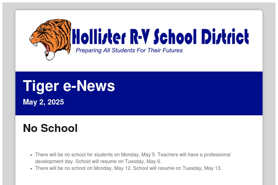 Tiger e-News May 2, 2025 No School There